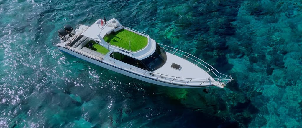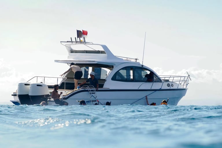 Once settled on the boat, guests are encouraged to take in the breathtaking scenery that unfolds around them. The gentle breeze carries the saltiness of the ocean, and the sound of waves lapping against the hull creates a soothing atmosphere. As the private boat speeds towards Nusa Penida, the iconic cliffs and lush landscapes of the island begin to emerge on the horizon, igniting a spark of excitement for the day's activities ahead