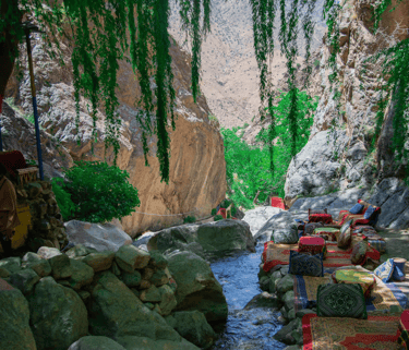 Upon reaching Setti Fatma, you're rewarded with stunning vistas of water plunging into crystal-clear pools. Relax by the riverbank, feeling the cool mist on your skin in the soothing ambiance. Enhance your experience with a picnic lunch of traditional Moroccan dishes like tagine or couscous, connecting deeply with Morocco's cultural heritage.