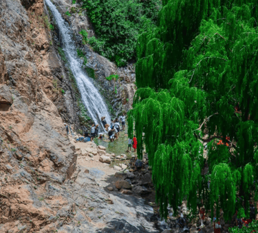 The hike to Setti Fatma Waterfalls offers an invigorating journey through the lush landscapes of the Ourika Valley. The trail is suitable for all fitness levels and winds through vibrant greenery, fragrant wildflowers, and towering trees. Along the way, you'll encounter a kaleidoscope of flora and fauna in this tranquil mountain setting.