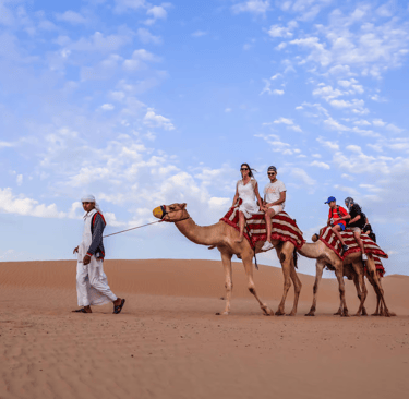 The calm rhythm of the camel contrasted beautifully with the day’s high-energy activities. I took a deep breath and let myself absorb the peaceful scenery—the rolling dunes, the endless horizon—while reflecting on the uniqueness of the desert.