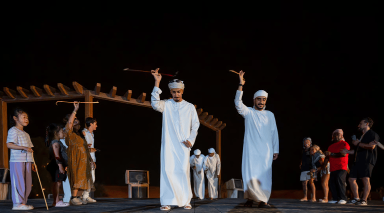 The night came alive with traditional dance performances and live music. I was mesmerized by the folklore displays, feeling the rich cultural heritage of the UAE come to life before my eyes.
